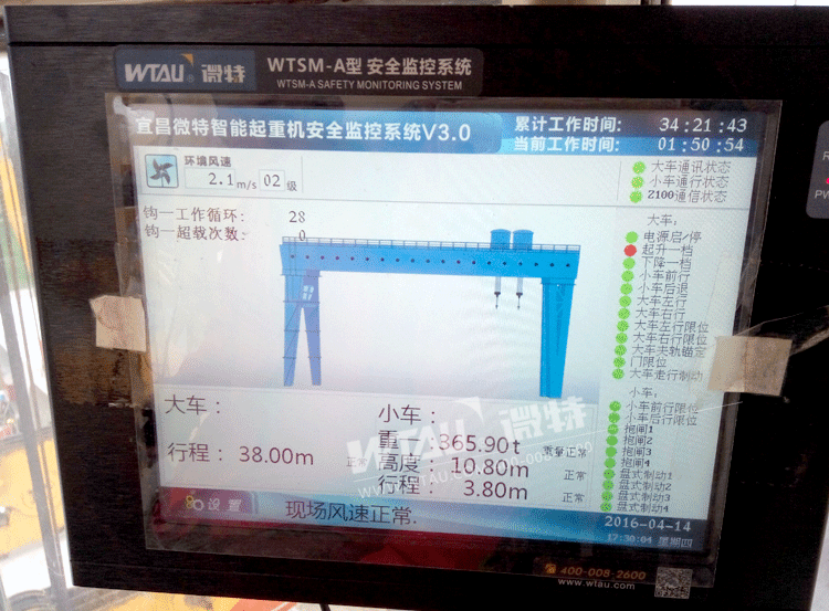 雖然該項目目前還處于架梁工序階段,但各相關(guān)領(lǐng)導(dǎo)卻對此非常重視。特別是對設(shè)備的安全運行及施工要求尤為高。對此微特的服務(wù)工程師對該設(shè)備進行了較全面的安全布控考慮,研發(fā)的安全監(jiān)控系統(tǒng)兼具圖像采集與數(shù)據(jù)采集功能,同時還能達到超安全范圍內(nèi)的斷電停機保護。