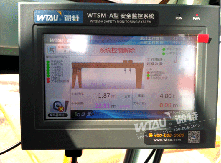 圖為微特WTSM-A型門式起重機(jī)安全監(jiān)控系統(tǒng)主機(jī)界面