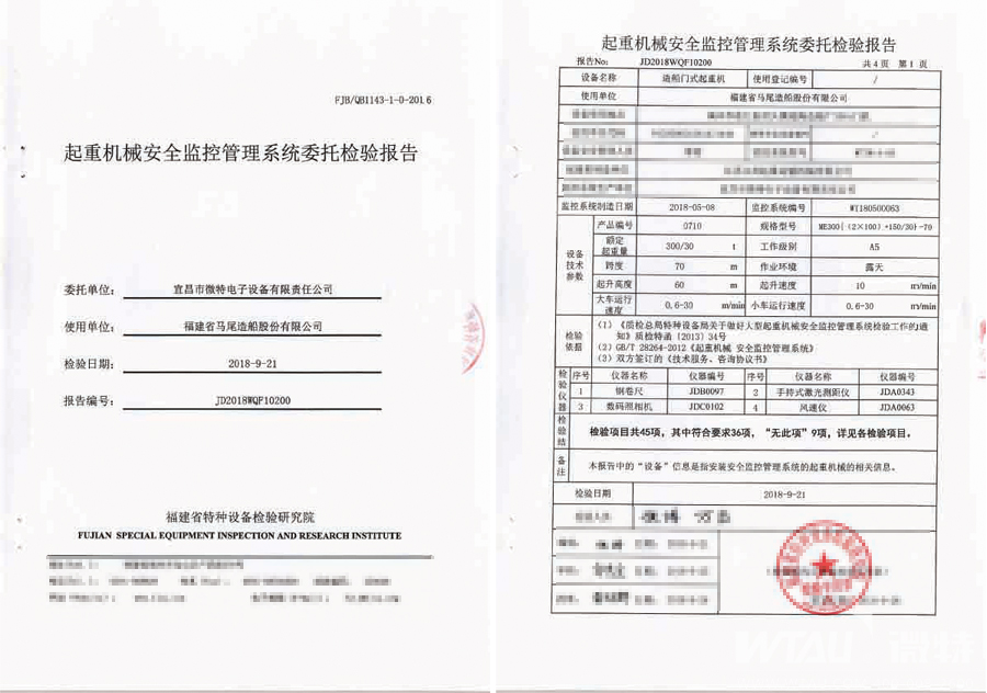 日前,微特為福建省馬尾造船股份有限公司一臺(tái)300T造船門式起重機(jī)配裝安全監(jiān)控系統(tǒng)改造項(xiàng)目已完工,并通過了福建省特種設(shè)備檢測(cè)研究院的驗(yàn)收。