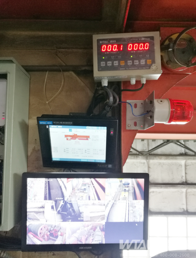 ▲圖片:配裝在駕駛室的WTSM-A型監(jiān)控系統(tǒng)儀表、WTZ起重量限制器儀表以及視頻監(jiān)控顯示器