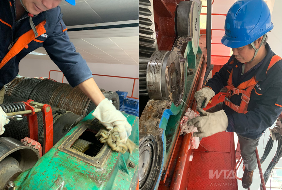 本次維護主要是對芭蕉河一級、二級站廠房橋機進行全面檢查維護作業(yè),并針對老設備存在的安全隱患問題,提出了針對性的處理意見,電廠對我方提出的處理方案積極響應,經(jīng)過技術討論,對兩臺橋機減速箱內(nèi)老化油脂進行全部更換、電氣回路進行問題排查處理,加裝安全保護裝置及儀表。