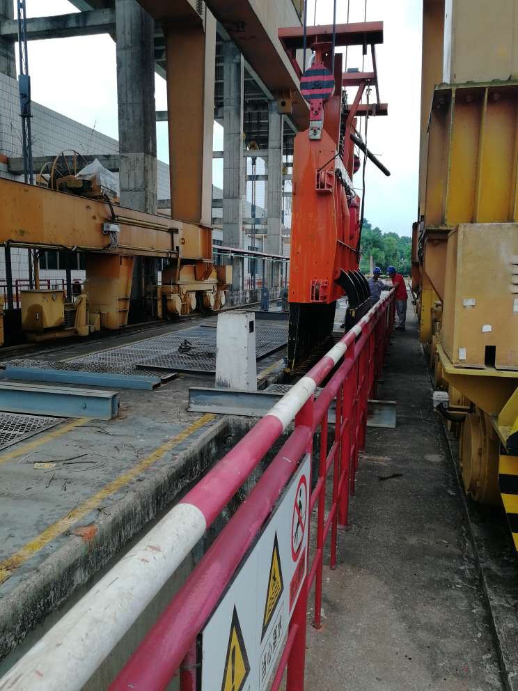 本次主要是對(duì)電廠(chǎng)壩頂門(mén)機(jī)及房橋機(jī)加裝WTSM-A安全監(jiān)控系統(tǒng)。電站壩頂門(mén)機(jī)主要用于機(jī)組進(jìn)水口清污機(jī)及配合啟閉機(jī)檢修工作,起吊重量最大可達(dá)一百六十噸,進(jìn)水口垃圾頻繁堵塞,門(mén)機(jī)使用也很頻繁。