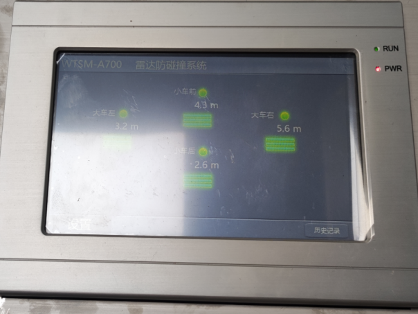 3、防撞雷達(dá)系統(tǒng)實(shí)時(shí)監(jiān)測吊鉤的下方,當(dāng)有危險(xiǎn)目標(biāo)(如行貨物架或其它堆放的物體)出現(xiàn),雷達(dá)系統(tǒng)提前向吊車司機(jī)發(fā)出報(bào)警,使司機(jī)及時(shí)作出反應(yīng),同時(shí)雷達(dá)輸出信號(hào)到達(dá)吊車控制系統(tǒng),根據(jù)情況進(jìn)行自動(dòng)停車或減速。
