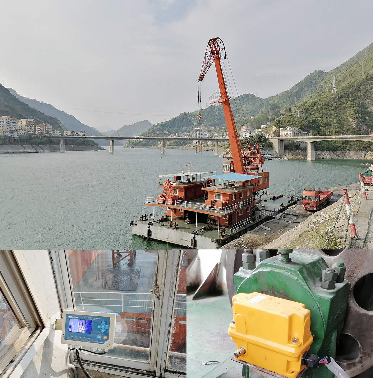 原有的浮吊在起升吊重及幅度上都只有機械式的限位裝置,操作人員沒有直觀的數(shù)字及明確的報警提示。在與微特進行詳細的需求溝通后,微特迅速組織技術人員驅車到往現(xiàn)場,為浮吊加裝了重量、角度、高度機械限位裝置。