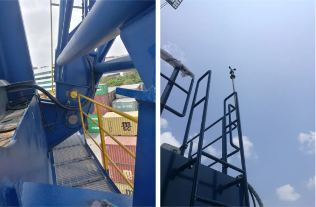 微特此次與中藝重工合作主要是為新裝固定式門座機(jī)安裝力矩限制器,在經(jīng)過項(xiàng)目前期的溝通洽談確定安裝方案后,微特售后工程師奔赴中山在現(xiàn)場(chǎng)人員配合下進(jìn)行儀表的安裝調(diào)試工作。