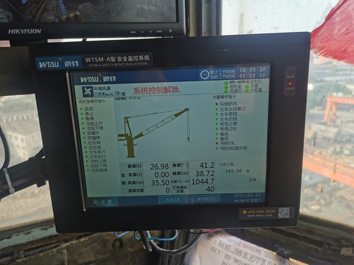 微特與東南造船廠此次合作加裝的WTSM-A型安全監(jiān)控系統(tǒng)按照國(guó)標(biāo)要求,對(duì)門座機(jī)機(jī)加裝了角度傳感器、風(fēng)速儀、力矩限制器,監(jiān)控系統(tǒng)主機(jī)與高度和行程測(cè)量傳感器,大臂頂端與四個(gè)支腿各加裝一個(gè)攝像頭。