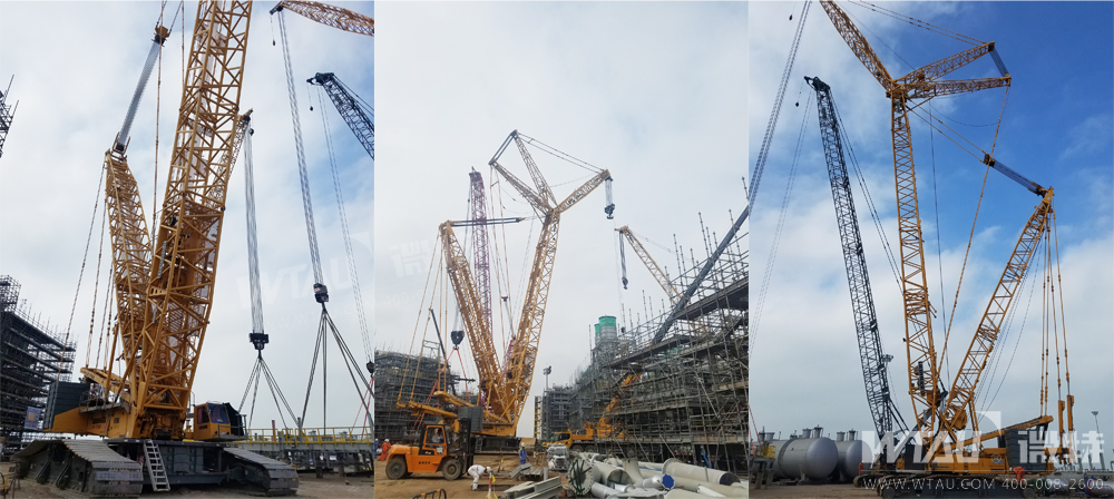 中海福陸重工有限公司吊裝工作現(xiàn)場(chǎng)多臺(tái)利勃海爾履帶吊在繁忙的工作中