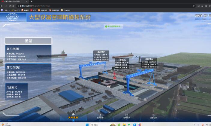 為保障生產(chǎn)安全,需要設(shè)計(jì)實(shí)施部署船塢、船臺吊機(jī)防碰撞系統(tǒng)及遠(yuǎn)程數(shù)字化監(jiān)控平臺,實(shí)時(shí)監(jiān)測船臺每臺吊機(jī)的運(yùn)行狀態(tài),預(yù)防起重機(jī)與起重機(jī)工作之間的碰撞隱患,規(guī)避安全風(fēng)險(xiǎn)。