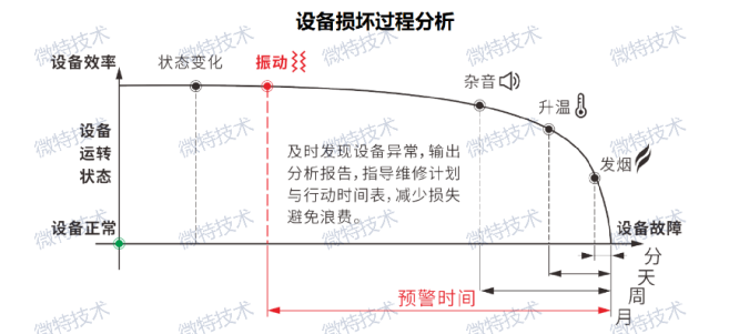 機泵類設(shè)備從投入使用至最終失效,是一個性能逐漸衰退、故障從無到有、從小到大的發(fā)展過程,等到設(shè)備已經(jīng)發(fā)生故障再采取補救措施勢必會影響安全生產(chǎn)。微特多維度數(shù)據(jù)分析診斷模型算法,對機泵類設(shè)備主要易損部件,包括軸承、齒輪、葉輪等部位進行故障診斷分析,將發(fā)現(xiàn)故障時間提前至少30天,讓管理人員有充分時間做出維護、維修、備件等計劃,保障設(shè)備安全作業(yè)的同時,最大程度減少了故障帶來的損失。