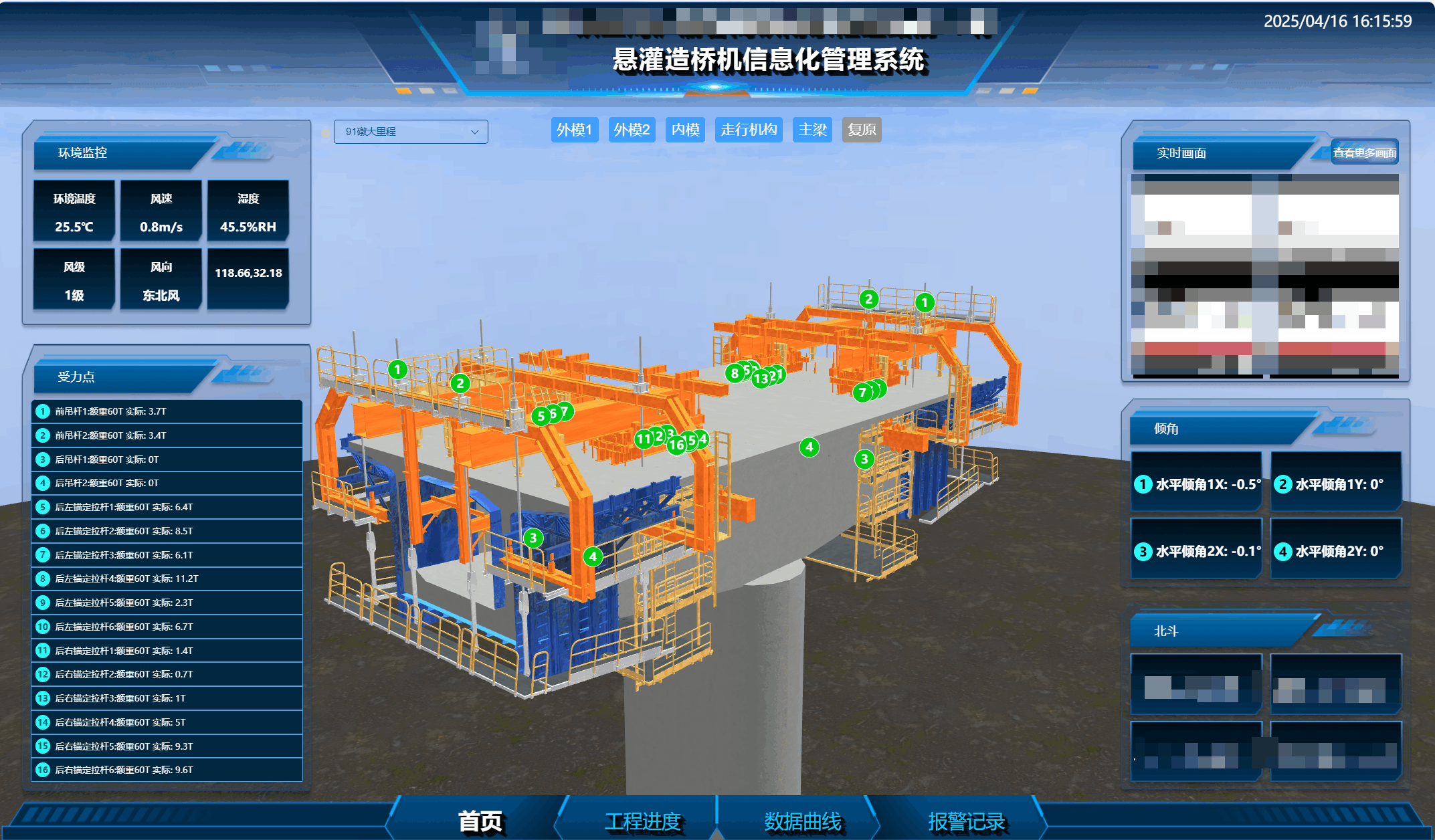 在越來(lái)越大的發(fā)展下,對(duì)造橋機(jī)的平衡施工監(jiān)測(cè),微特技術(shù)有限公司參與了2年多,也就是和該類型設(shè)備首次出現(xiàn)就開始了對(duì)其安全性的監(jiān)測(cè)。在雄忻高鐵項(xiàng)目,微特首次和設(shè)計(jì)院合作為其第一臺(tái)上承式造橋機(jī)進(jìn)行了監(jiān)測(cè)。主要測(cè)量#走線不平衡#重量澆筑不平衡,兩個(gè)關(guān)鍵參數(shù)分別用力傳感器和北斗監(jiān)測(cè)實(shí)現(xiàn)。其次對(duì)設(shè)備本身傾斜,走行距離,結(jié)構(gòu)應(yīng)力,環(huán)境監(jiān)測(cè)等數(shù)據(jù)進(jìn)行采集。另外對(duì)現(xiàn)場(chǎng)施工視頻監(jiān)控進(jìn)行覆蓋。