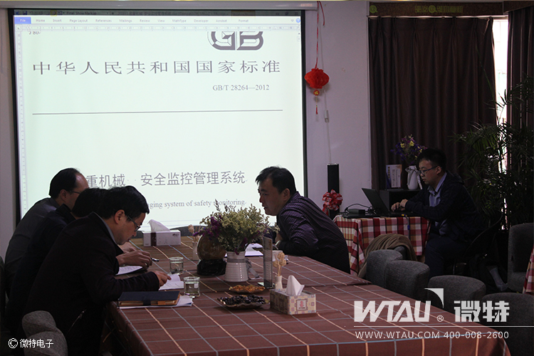 當天上午,北京起重運輸機械設計研究院 起重工程部岳文翀部長一行來到微特開展《起重機械 安全監(jiān)控管理系統(tǒng)》國標起草的意見討論。微特電子技術總監(jiān)高鈺敏及技術工程師一同參與討論。
