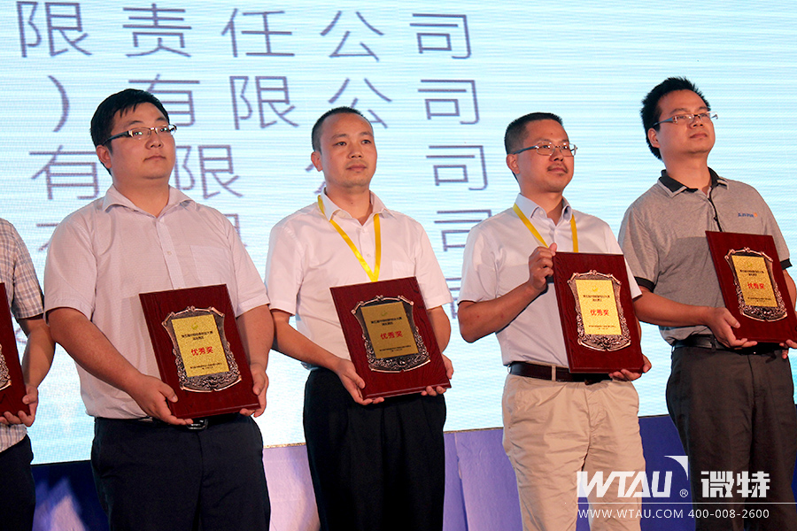 微特電子市場總監(jiān)李彬(中)上臺接受頒獎