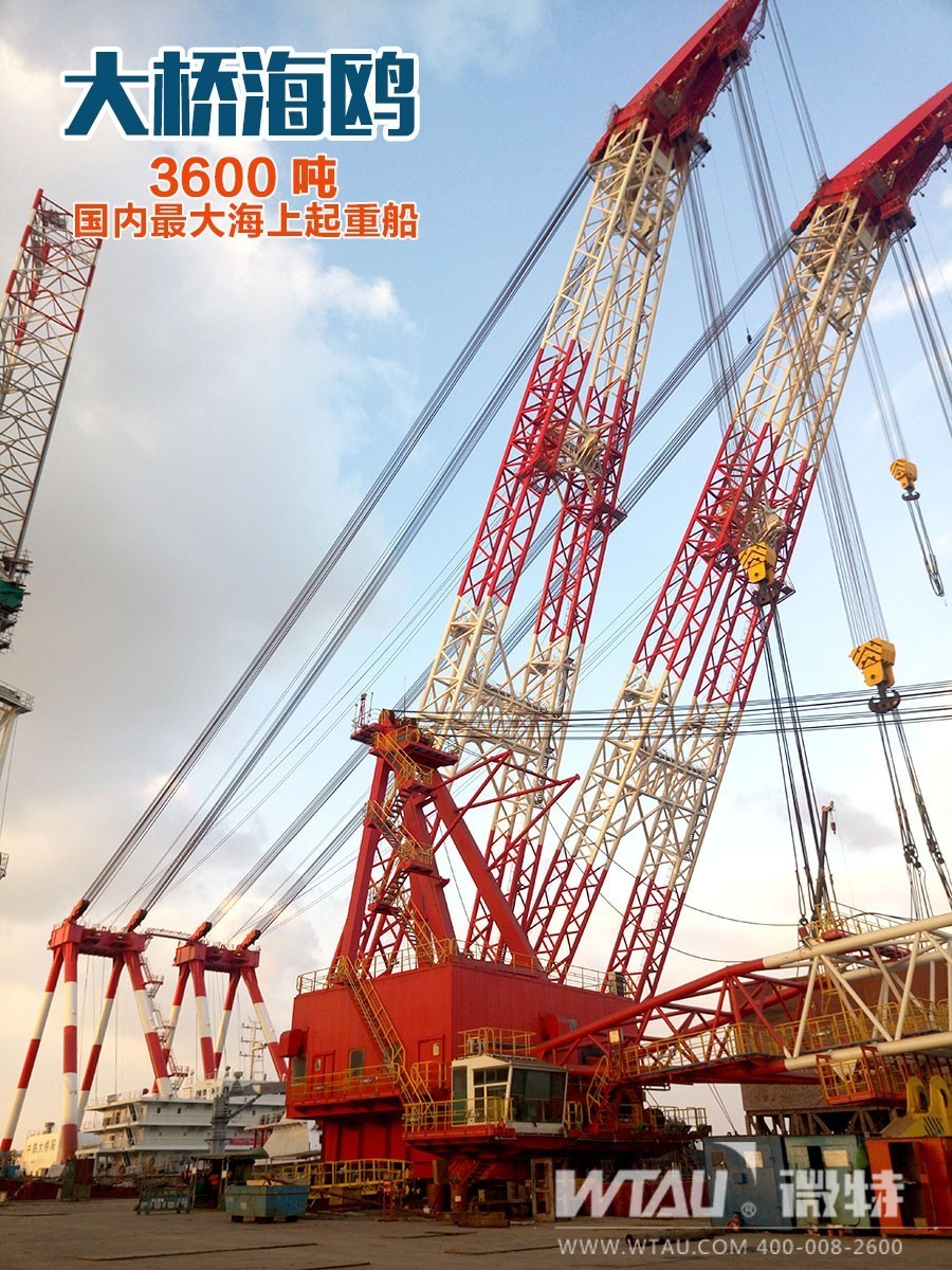 “大橋海鷗”3600T起重船為中國自主研發(fā)設計制造,平潭海峽大橋80米和88米鋼桁梁的整孔吊裝架設,需要起重量3200噸以上、吊高110米的起重船。為滿足平潭海峽公鐵兩用大橋整孔鋼梁架設及大型構件的海上吊裝需要,2015年初,中鐵大橋局投資3.4億元設計建造了這艘3600噸起重船。它是中鐵大橋局“走向海洋”戰(zhàn)略實施的重要裝備支撐。