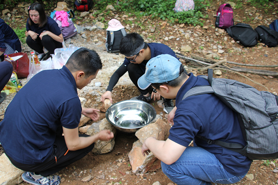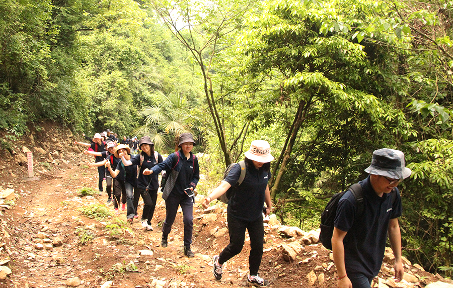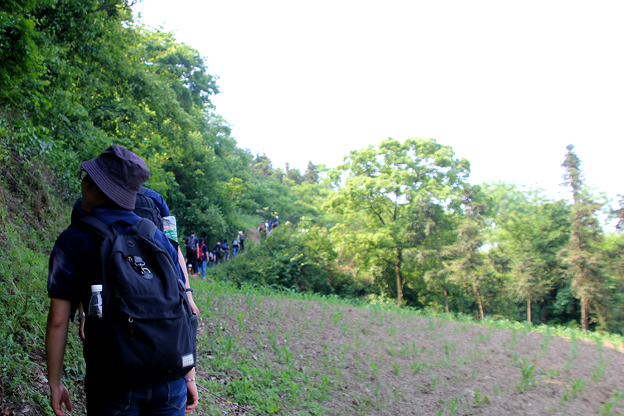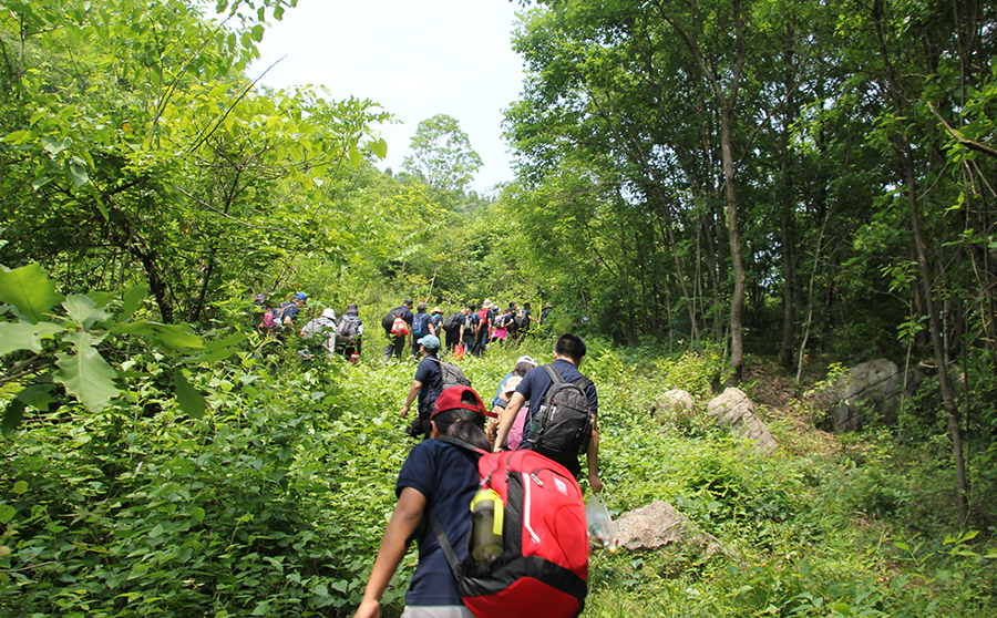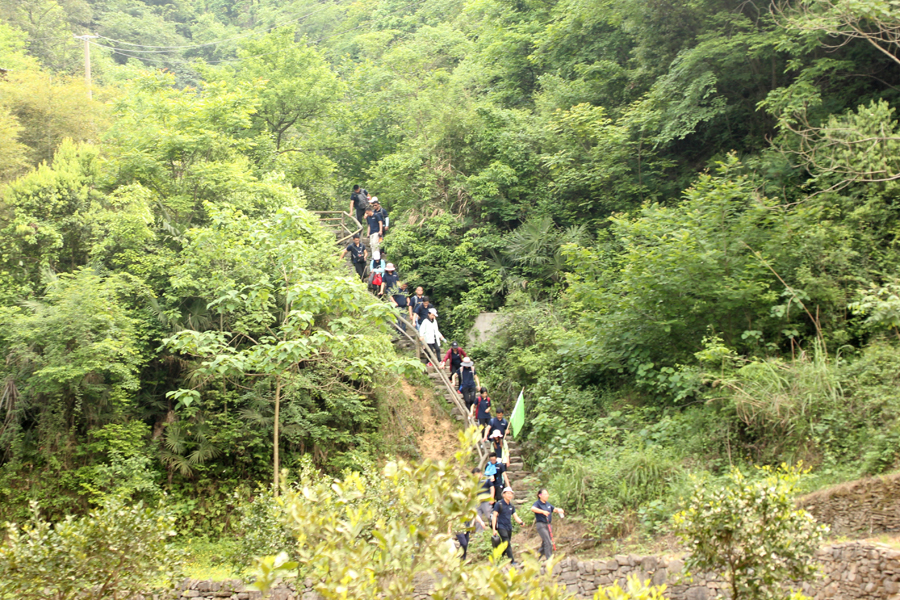 野炊結(jié)束各隊稍作休整即開始出發(fā),走在山澗的小路上,歡樂的隊伍打破了安靜的山林。