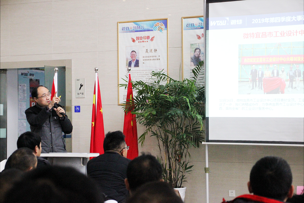 會(huì)議中,公司總經(jīng)理高鈺敏帶領(lǐng)與會(huì)同事一起回顧了19年第四季度的重要事件。在第四季度中,微特各部門全部順利完成19年全年累積銷售任務(wù),截止12月31日,公司整體大幅超額完成全年任務(wù);聶董參加湖北省委經(jīng)濟(jì)工作會(huì)議及省政協(xié)專題會(huì)并宣講發(fā)言;微特被國家工信部認(rèn)定為國家級工業(yè)設(shè)計(jì)企業(yè)并參加第三屆中國工業(yè)設(shè)計(jì)展覽會(huì);微特宜昌市工業(yè)設(shè)計(jì)中心項(xiàng)目喜封金頂;10月份,微特參加19年印尼海事展;聶董獲聘為三峽大學(xué)碩士生導(dǎo)師;微特受邀參加中電建協(xié)施工機(jī)械專業(yè)委員會(huì)年會(huì),參加中國機(jī)械工程學(xué)會(huì)物流工程分會(huì)六屆二次理事會(huì),參加印度國際工程機(jī)械與技術(shù)展覽會(huì)等多項(xiàng)重要會(huì)議。