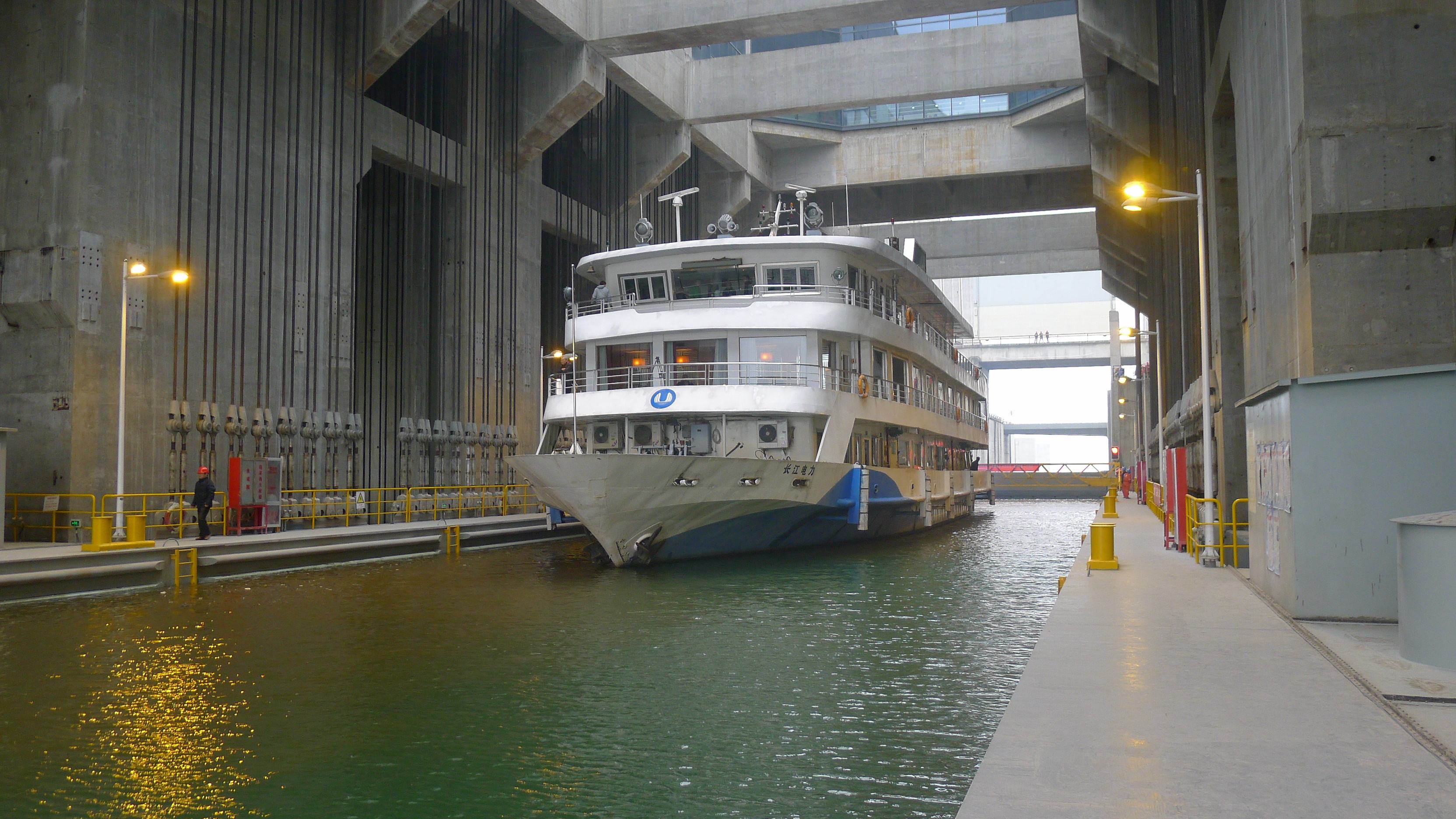 船舶如果要順暢往返于上下游,就必須通過三峽樞紐工程的雙線五級梯級船閘或垂直升船機(jī)。
