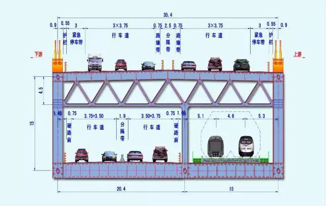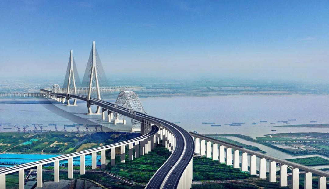 常泰長江大橋位于泰州大橋與江陰大橋之間,主航道橋采用雙層斜拉橋方式。該項目創(chuàng)下三項世界第一,一是世界上首座集高速公路、城際鐵路、一級公路為一體的過江通道,二是其主航道主跨1176米的斜拉橋,將刷新公鐵兩用斜拉橋的世界紀(jì)錄;三是兩側(cè)連接天星洲和錄安洲的兩座拱橋?qū)⒊蔀槭澜缟献畲罂缍鹊墓F兩用鋼桁梁拱橋。