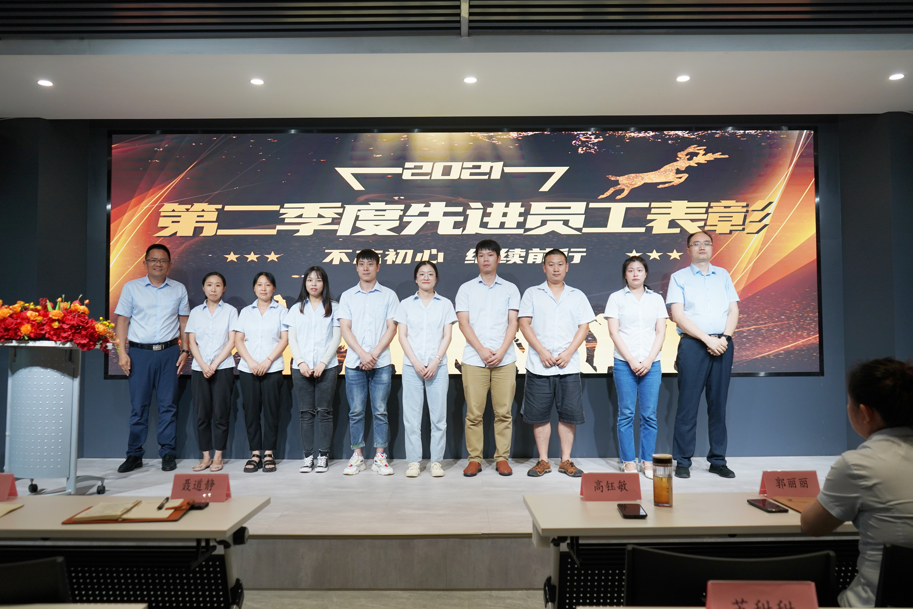 第二季度的每一個獎項都凝聚了獲獎者們的付出與汗水,七月的盛夏,帶著豐收的喜悅,承載上一季度的榮譽,為這一季度的先進者戴冠加冕。董事長聶道靜和總經(jīng)理高鈺敏為獲獎季度先進人員頒發(fā)獎金。