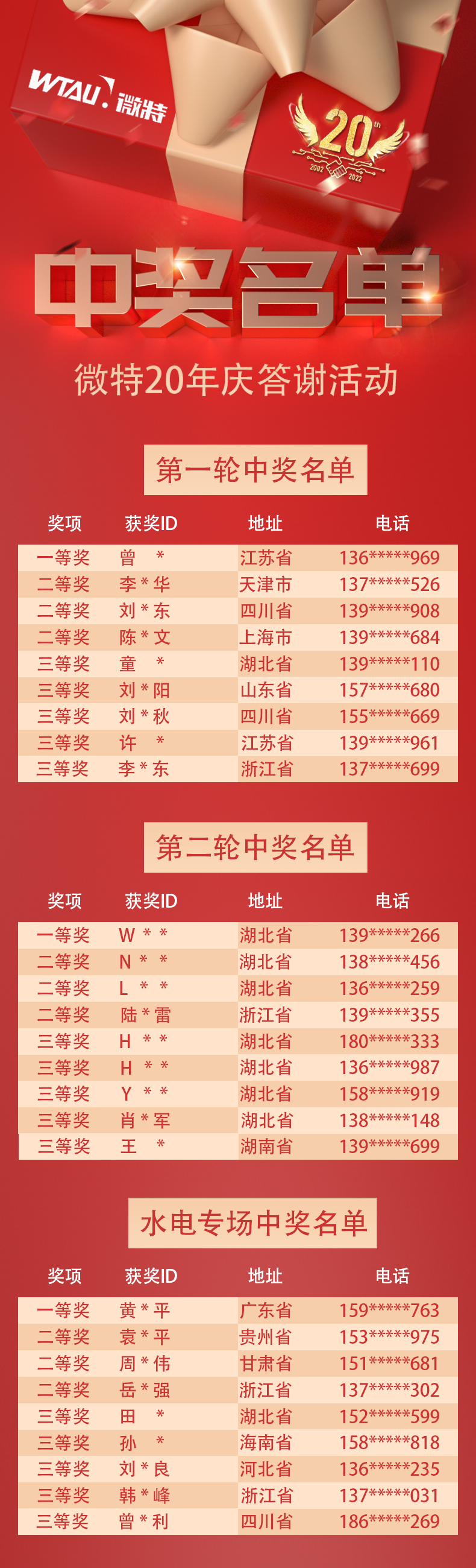 【微特20周年】中獎名單新鮮出爐,快來看看有沒有您
