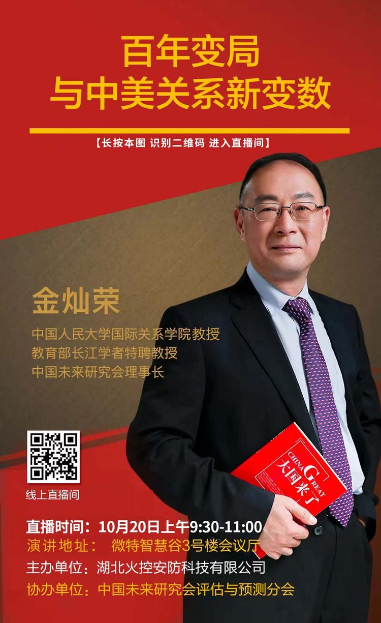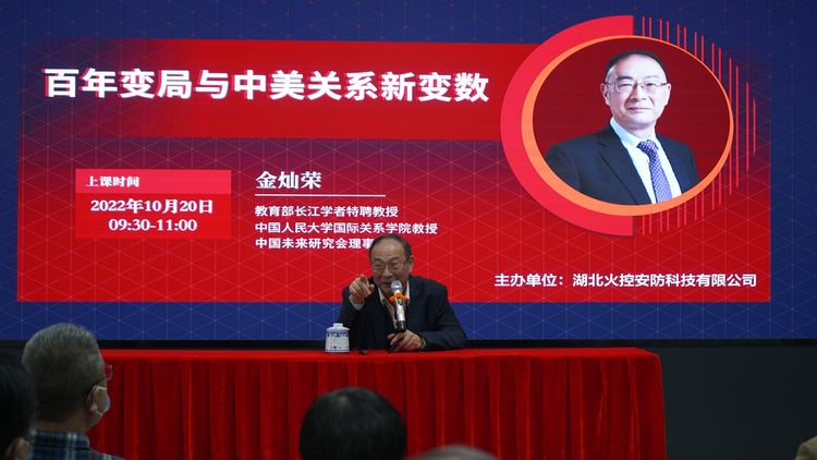 10月20日上午,“百年變局與中美關系新變數(shù)”專題講座在微特智慧谷會議廳成功舉行。此次活動由湖北火控安防科技有限公司主辦,微特智慧谷協(xié)辦,邀請教育部長江學者特聘教授、中國未來研究會理事長、中國人民大學國際關系學院金燦榮教授為主講嘉賓。本次講座吸引200余名聽眾到場,會場座無虛席,同時全網(wǎng)實時直播。