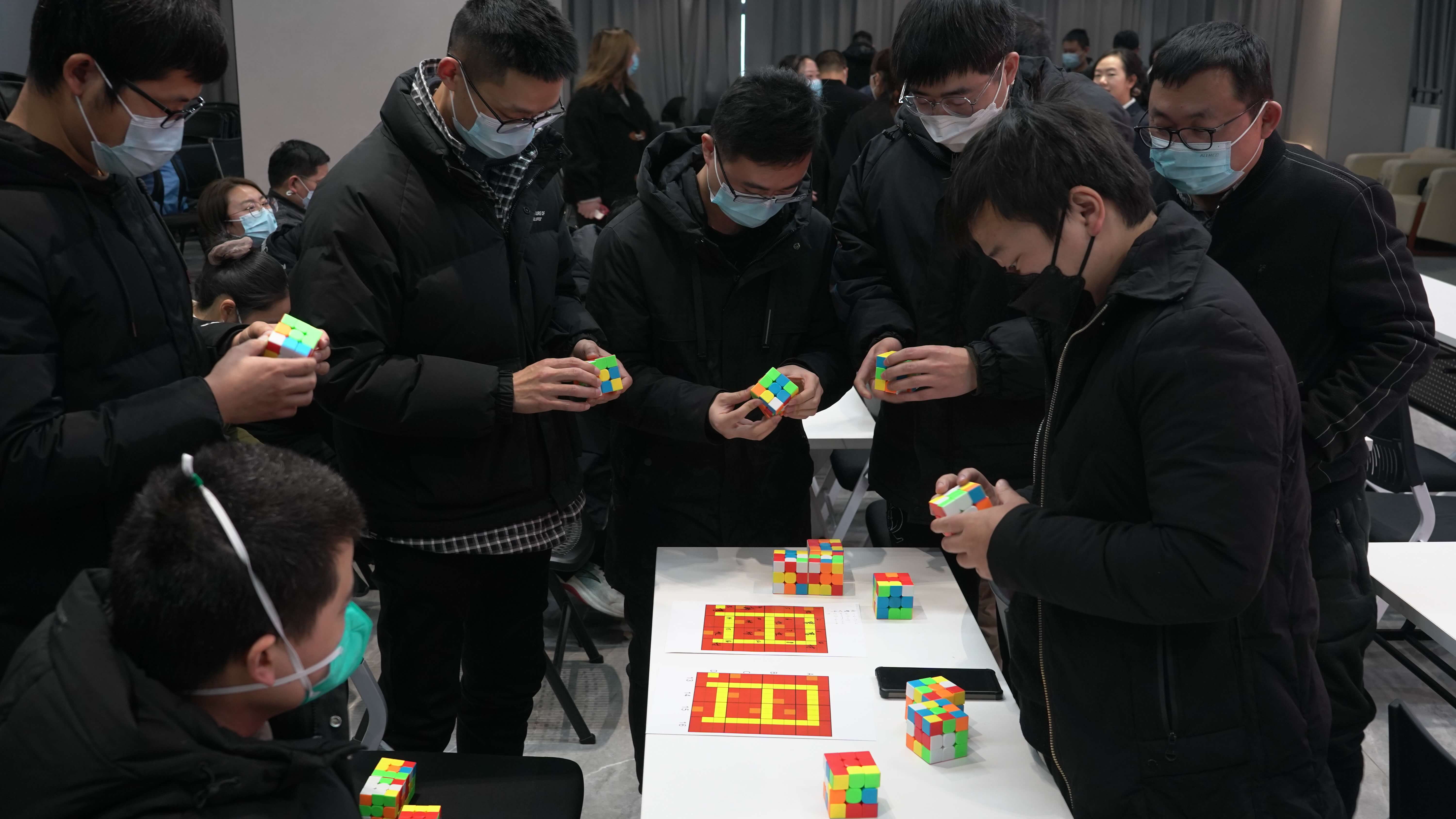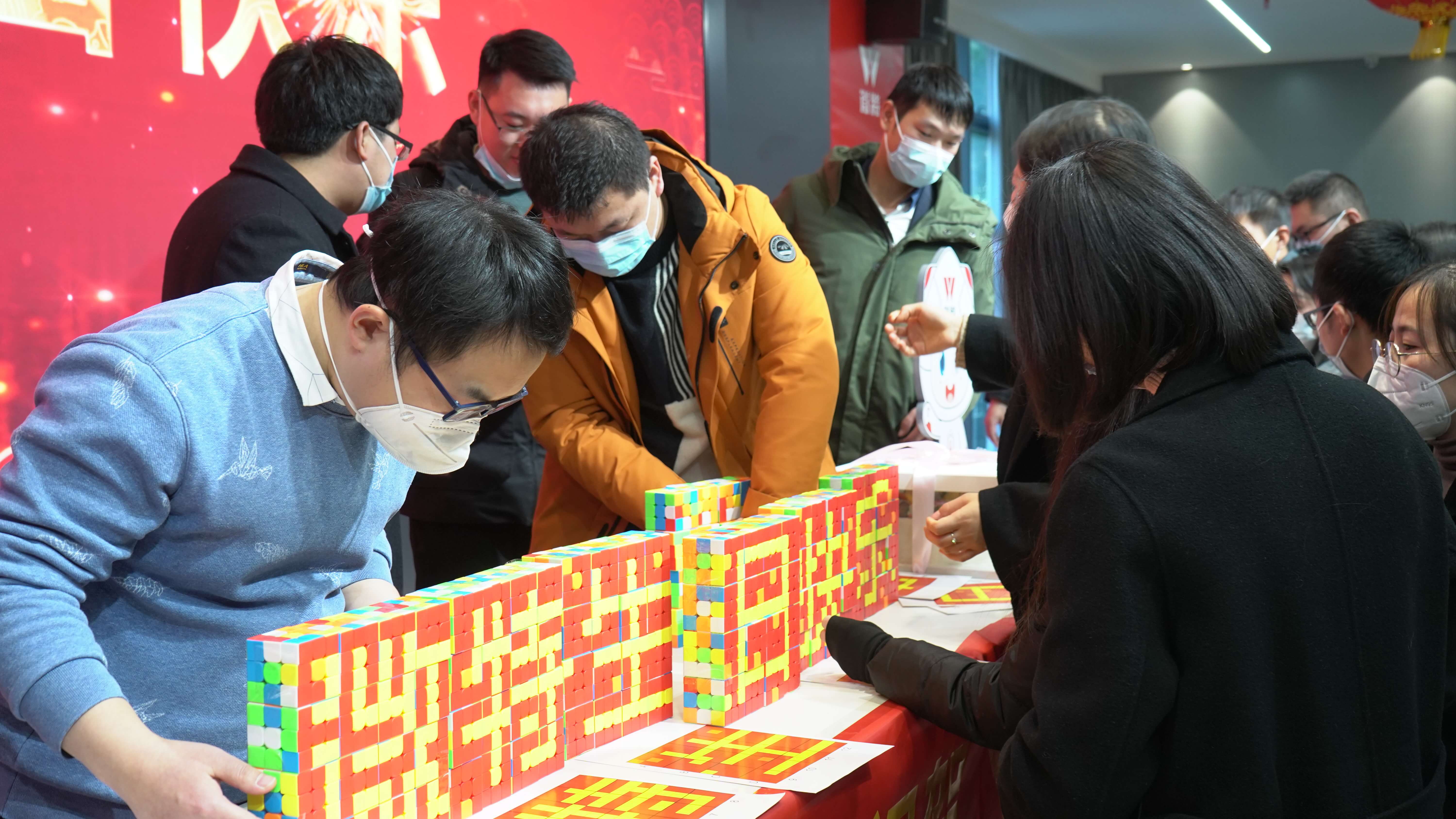 12個部門,在大家通力協(xié)助的努力下,每個部門都以最快速度用16個魔方拼成制定的圖案字。伴隨著生日歌的響起,臺上臺下成員一同齊唱生日歌。生日歌結束后,大家齊聲高喊“祝微特生日快樂 2023篤定前行”,將此次生日會推向高潮。