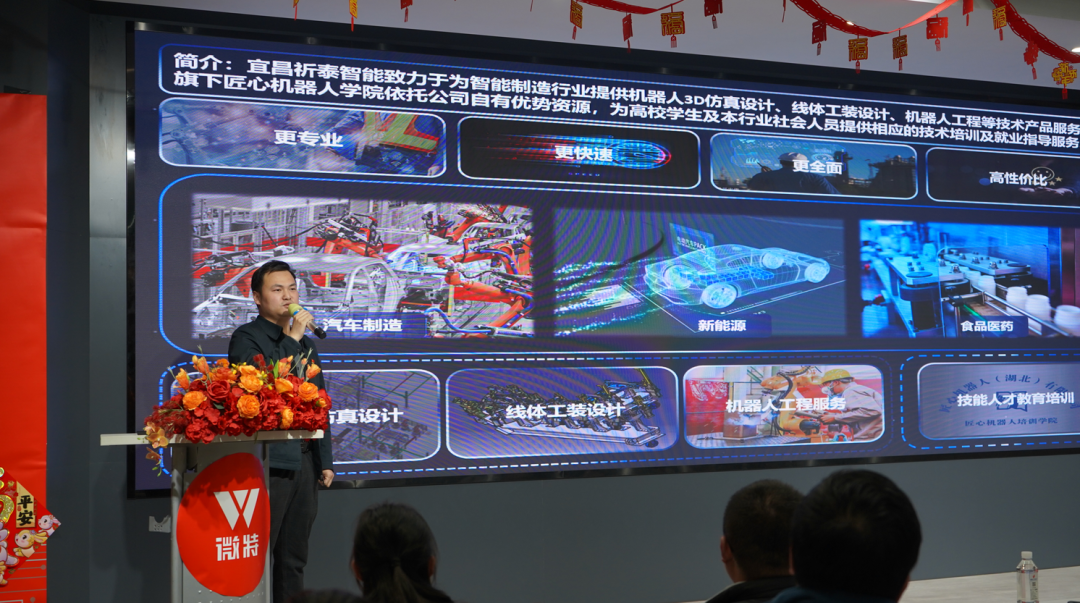 (匠心機器人(湖北)有限公司負責(zé)人張凱作為微特智慧谷青年創(chuàng)業(yè)者代表就回宜創(chuàng)業(yè)進行感悟分享)