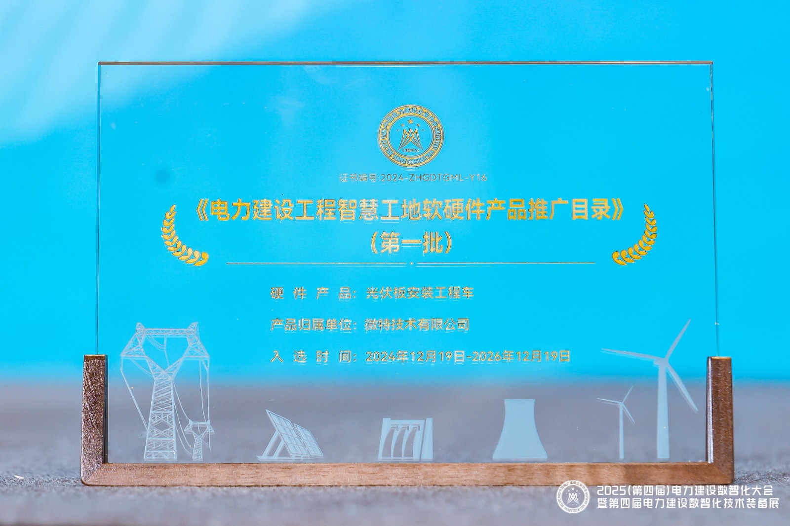 微特光伏板安裝工程車入選電力建設工程智慧工地全軟硬件產(chǎn)品推廣目錄。