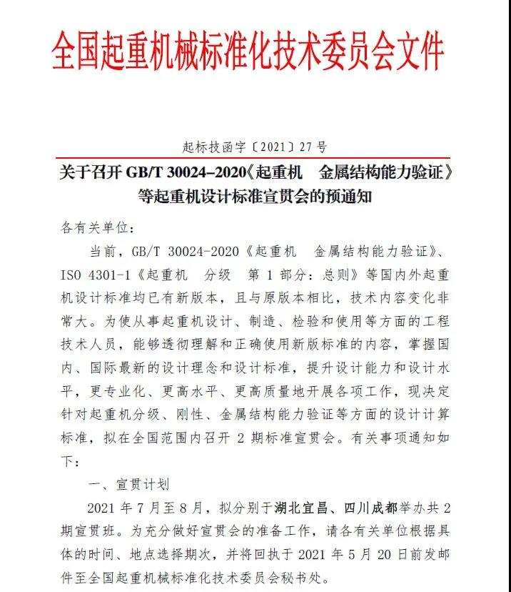 盛會云集的7月當(dāng)然不止江西的這一場。行業(yè)精英的集結(jié),知識的分享;思想的碰撞,靈感的激發(fā);資源的匯聚,業(yè)務(wù)的開拓,合作的達(dá)成;老友的相聚,新友的相遇;一切盡在... 2021年7月,即將在湖北宜昌舉行,由微特技術(shù)有限公司承辦的關(guān)于GB/T 30024-2020《起重機 金屬結(jié)構(gòu)能力驗證》等起重機設(shè)計標(biāo)準(zhǔn)宣貫會第一期,屆時起重機領(lǐng)域精英薈萃,大咖云集。