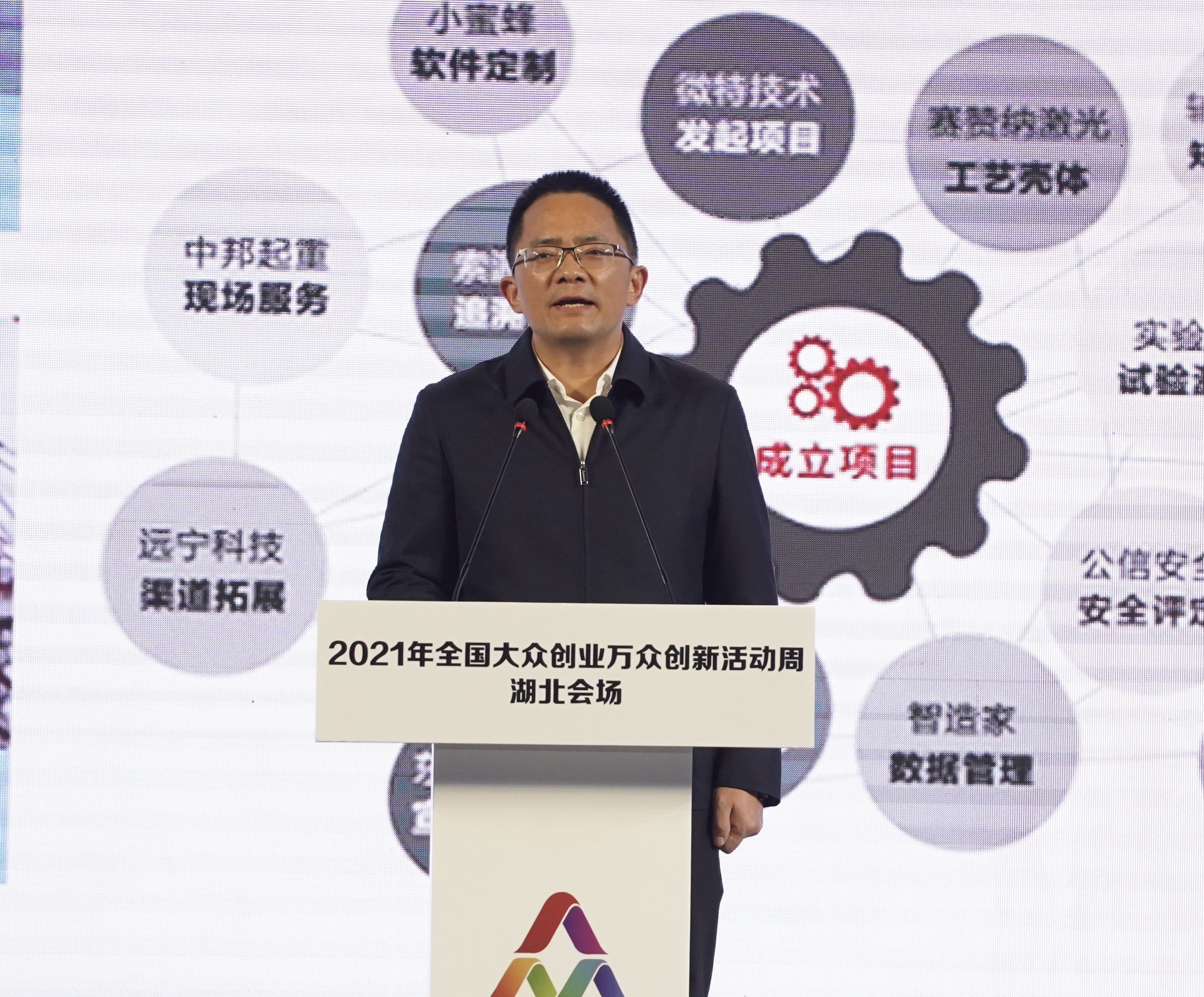2021年10月19日下午15:00,以“高質(zhì)量創(chuàng)新創(chuàng)造,高水平創(chuàng)業(yè)就業(yè)”為主題的“2021年全國大眾創(chuàng)業(yè)萬眾創(chuàng)新活動周”湖北分會場正式啟動,中共中央政治局常委、國務(wù)院總理李克強(qiáng)在北京人民大會堂出席2021年全國大眾創(chuàng)業(yè)萬眾創(chuàng)新活動周,發(fā)表重要講話,并宣布活動周正式啟動?;顒硬扇【€上線下相結(jié)合方式舉辦,全方位、多渠道、立體式呈現(xiàn)湖北省大眾創(chuàng)業(yè)萬眾創(chuàng)新作為新成效,營造良好的創(chuàng)業(yè)創(chuàng)新氛圍。