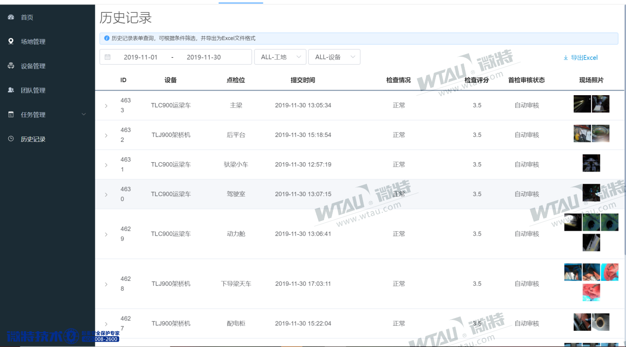 數(shù)據(jù)導(dǎo)出功能:管理員可在PC端導(dǎo)出按時(shí)間段分設(shè)備導(dǎo)出設(shè)備點(diǎn)檢的所有數(shù)據(jù),生成表格,該系統(tǒng)可很好取代之前項(xiàng)目上的紙質(zhì)設(shè)備檢查表格及交接班檢查記錄表格。不增加項(xiàng)目設(shè)備使用人員的日常工作量。