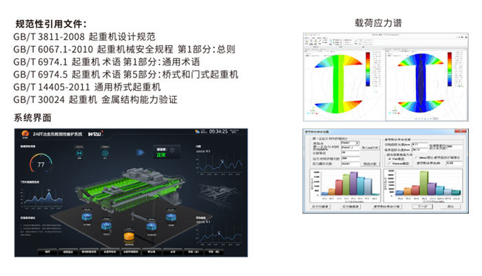 WT-SMS-YL03鑄造起重機應(yīng)力在線監(jiān)測系統(tǒng),是依據(jù)鑄造起重機報廢標(biāo)準(zhǔn)開發(fā)制造的能實時監(jiān)測、顯示主梁在各種載荷下的應(yīng)力數(shù)據(jù),根據(jù)設(shè)計安全范圍給出橋機主梁疲勞結(jié)構(gòu)應(yīng)力過載超范圍預(yù)警提示,系統(tǒng)能存儲、導(dǎo)出數(shù)據(jù),可以對監(jiān)測的數(shù)據(jù)做趨勢分析,結(jié)合有限元分析和載荷應(yīng)力譜對主梁的健康度做評測。