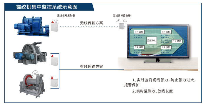 大型工程船、浮吊、油輪、躉船、錨地等工程設(shè)施在施工、靠泊、牽引、??繜o(wú)人值守時(shí),會(huì)采用絞纜機(jī)張拉纜繩就位、固定,絞纜機(jī)牽引力與剎車(chē)制動(dòng)力距需要實(shí)時(shí)監(jiān)測(cè),并在過(guò)載時(shí)發(fā)出明顯的警報(bào)、可以在超力矩時(shí)有計(jì)劃的松閘釋放部分力矩,保障纜繩、錨機(jī)、船舶不出事故。