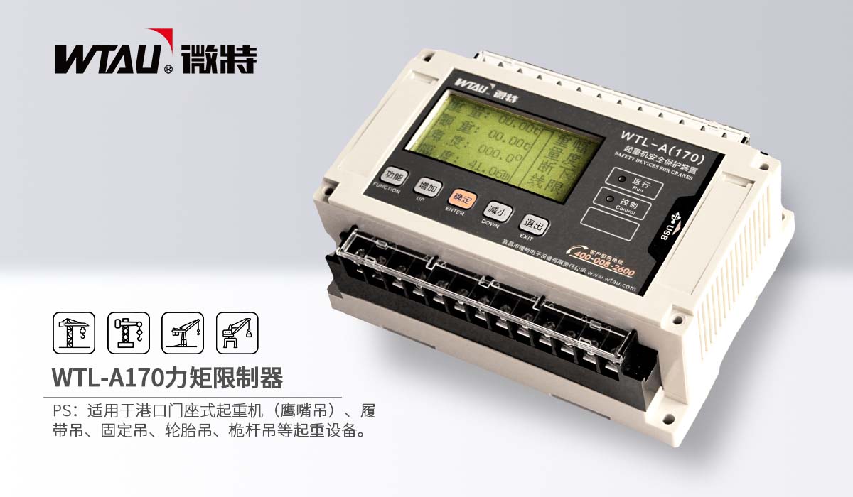 WTL-A170力矩限制器產(chǎn)品特別適用于用于雙搖臂抱桿、汽車吊、港口門座式起重機(jī)(鷹嘴吊)、履帶吊、固定吊、輪胎吊、桅桿吊等監(jiān)控信號(hào)較多的起重設(shè)備。