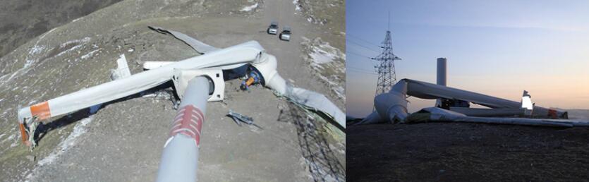 山西某風(fēng)電場(chǎng)43#塔筒從中、下段法蘭連接處折斷倒塌,主機(jī)隨同塔筒上段和中段朝著主導(dǎo)風(fēng)向北偏西60度方向,法蘭盤(pán)脖頸距端部12mm處撕裂近三分之二(連接螺栓83孔),三分之一螺栓斷裂(42個(gè)),中塔筒下法蘭約三分之一撕裂隨中塔筒倒下。