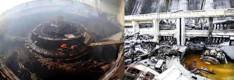 薩某水電站2號(hào)機(jī)組因超負(fù)荷運(yùn)行,導(dǎo)致水輪機(jī)頂蓋的錨定螺栓被拉斷。斷裂后,機(jī)組轉(zhuǎn)動(dòng)部件及頂蓋在巨大水壓下向上拋出,破壞廠房結(jié)構(gòu),引發(fā)水淹廠房的連鎖災(zāi)害,造成75人死亡、13人受傷,多臺(tái)機(jī)組完全損毀。
