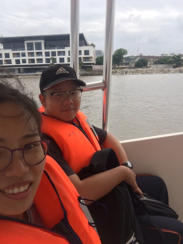 換乘交通工具,在船上來張自拍