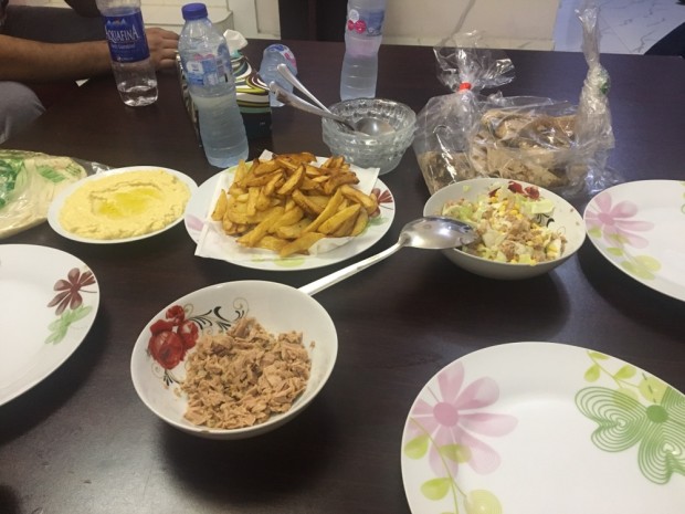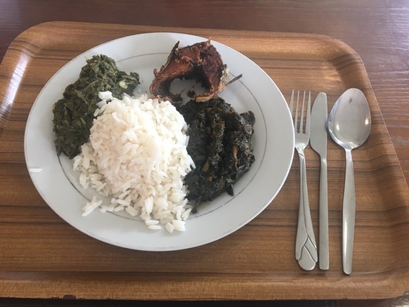 在尼日尼亞的第一餐,因?yàn)轲I了,所以吃到一半才記起拍個(gè)照片,對(duì)面的同事很厲害,已快速解決了。味道“國(guó)內(nèi)的東西還是好吃些”