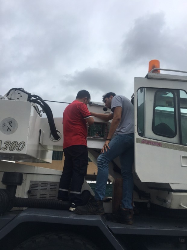正事還是比較重要啦,給客戶的吊車上安裝力矩限制器,微特的起重安全產(chǎn)品在海外的應(yīng)用可是很廣泛的哦