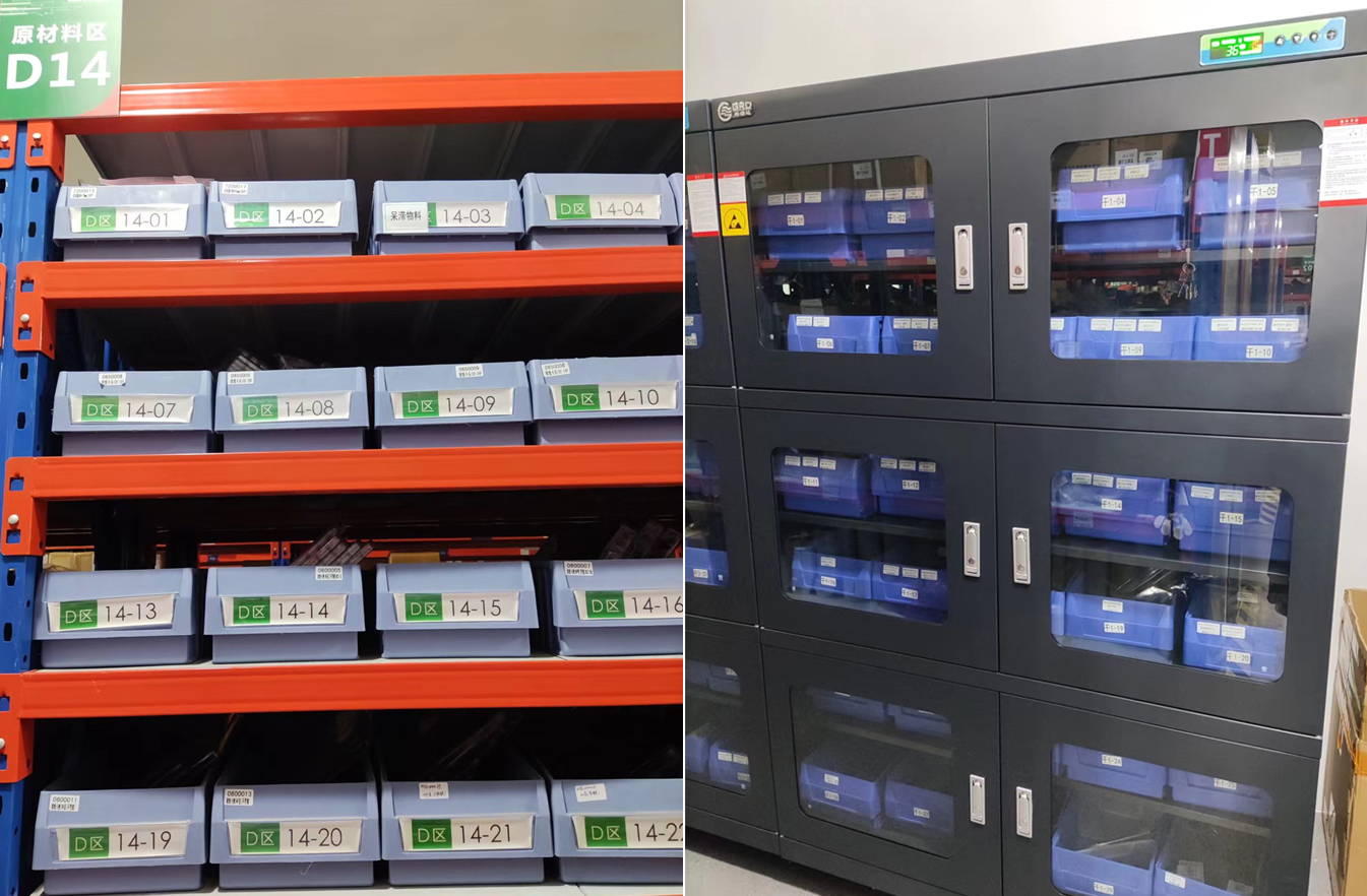 ▲左圖:原材料貨架物料 右圖:特殊物料保存柜